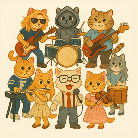 In the land of Animalia, every kind of animal has its town—and incredible music. But the beat takes a dangerous turn when the famous Eight Cool Cats are kidnapped by a sneaky dog manager named Ruffa Puffertwight. Ruffa has a big problem: he wants to win the brand-new Super Band Competition in Birdheights, where mixed-animal bands aren’t allowed. His “brilliant” (and terrible) idea? Kidnap the cats’ mothers with sleepy-time milk and force the kittens to hide in dog costumes so they can play in his not-so-great dog band.